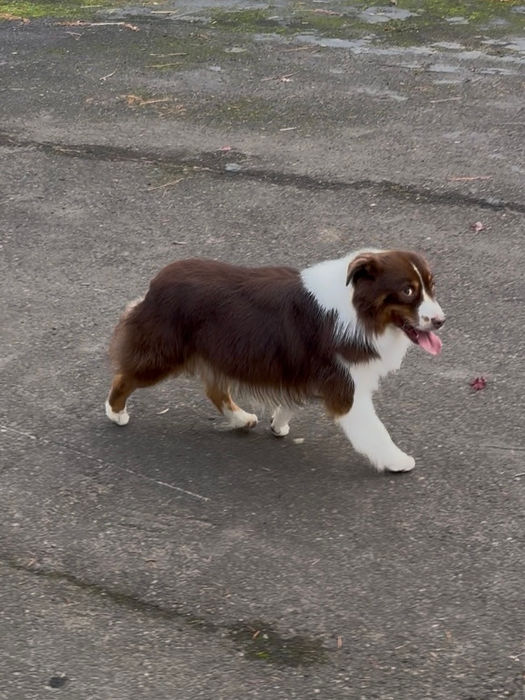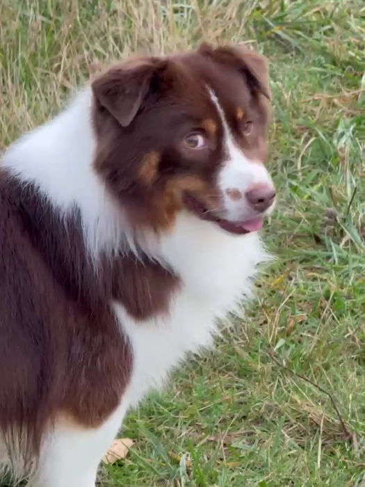 Itch is a very happy male who makes an incredible companion. He is gentle, friendly, and gets along with everyone he meets. His beautiful coat and structure make him a standout example of a Miniature American Shepherd. He loves to follow you around, always curious about what you are doing, and he has an excellent recall.